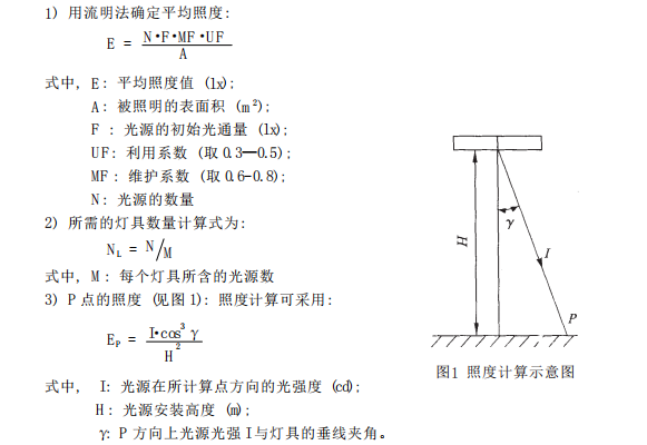 的照度计算值和照度曲线图来确定照度。计算的目的是要确定所需的光源、灯具数量和功