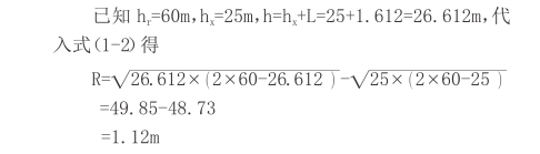 赢咖7极悦已知 h x =25m,h=h x +L=25+1.612=26.612m,即 h≤30m,代入式 1 得:R=h-h x =1.612m