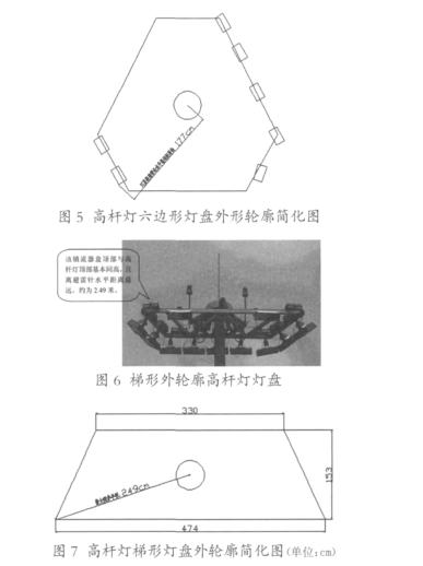 3 站坪高杆灯的灯盘类型及其特点:目前机场站坪高杆灯的灯盘类型有两种,一种是六边形灯盘,另一种是梯形灯盘。