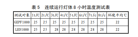 对比试验结论:灯体温度变化不大。(温度集中在发光体或电源上,其中:GE 光源可达上百度,LED 电源板可达几十度。)