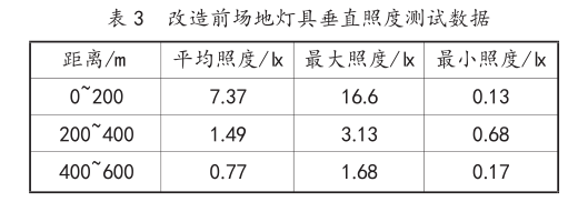 2.2.2 改造前灯具垂直照度数据改造前场地灯具垂直照度数据见表 3。