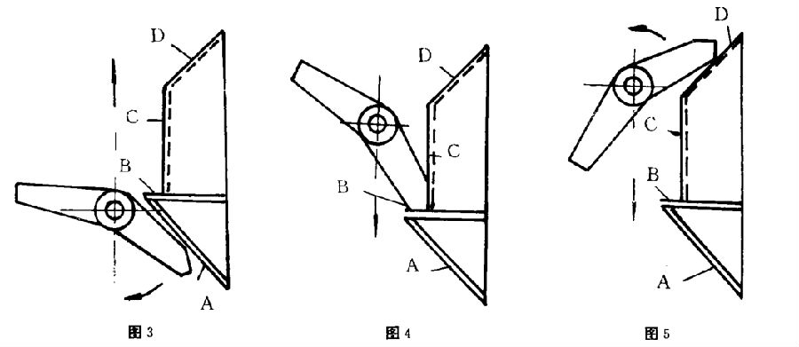 当 锁 爪处 在 锁座 C 面 范 围内,停 止 灯头 的上 升,并让其下 降,锁 爪 右 端 将沿C面 下 滑,最 后在 C 面 和 B 面 交线 处 被 锁住,即灯 头此时 与灯 杆 联锁 处在 工作状 态,如 图4所 示。