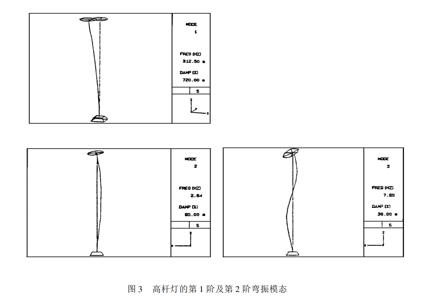 本文通过环境激励的响应分析, 研究了30米高杆灯的动特性。 然后, 在发生风致 振动的实际条件下, 测量了振动频率和振型以及当时的风速, 确认振动的原因是一种流固耦合 作用形成的风的尾流脱落激励引起结构共振。 文中讨论了环境激励响应测量的理论依据, 测量 方法、数据采集和分析技术, 并给出了避免风致振动的理论依据及有关设计公式。 关键词 高柔结构, 风载, 环境激励, 模态分析, 随机响应 一、引 言 环境激励常常引起高柔结构的振动, 从而引起许多工程人员的关注, 这方面的研究工作 近年来多有发表[ 1 -5] 。本文根据线性结构的随机振动理论, 讨论了高柔结构现场实测的有 关问题, 如实验方法 、数据采集 、模态分析等。文中详细地论证了利用地面环境激励的响应 谱分析进行结构振型分析的理论依据, 并给出了测量低频模态小阻尼情况时采样长度的确 定方法, 以保证阻尼分析精度 。 论文通过现场实测分析了北京某地的 30 米高杆灯风振的原因, 并给出了高杆灯设计的 有关公式 。 二 、地面随机运动所引起的结构振动响应分析 高柔结构的振动以水平振动为主。此处仅就水平振动进行分析 。 本文受北京市市政建筑设计所委托研究, 现场实测与该所合作进行 本文收稿日期:1997 年 7 月